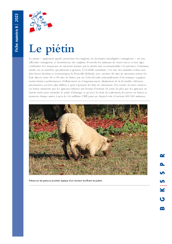 Le piétin – également appelé pourriture des onglons, ou dermatite interdigitée contagieuse – est une affection contagieuse et douloureuse des onglons. Il touche les animaux de toutes races et tous âges confondus.