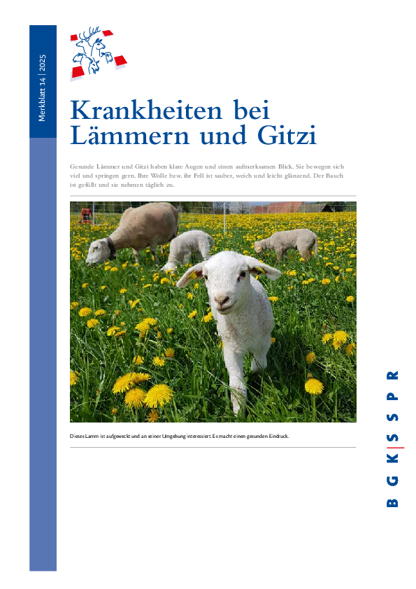 Gesunde Lämmer und Gitzi haben klare Augen und einen aufmerksamen Blick. Sie bewegen sich viel und springen gern. Ihre Wolle bzw. ihr Fell ist sauber, weich und leicht glänzend. Der Bauch ist gefüllt und sie nehmen täglich zu.